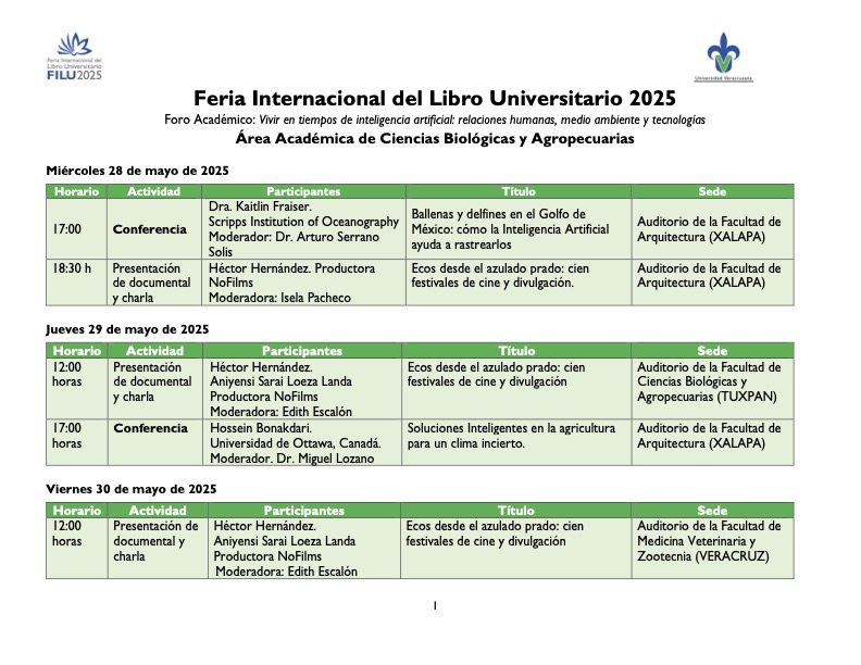 La Dirección General del Área Académica de Ciencias Biológicas y Agropecuarias hace de su conocimiento que del 23 de mayo al 1 de junio se realizará en Xalapa la Feria Internacional del Libro Universitario FILU 2025, 30ª Edición. En este encuentro el área académica realizará en Xalapa tres actividades de gran importancia para la Universidad en su conjunto, y sobre todo, para la comunidad universitaria de las facultades y programas. Éstas son: