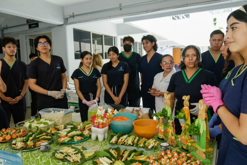 Así, con el reto de despertar conciencia alimentaria y planetaria en nuestro estudiantado, se invitó a académicos y estudiantes con proyectos que involucran diversas temáticas afines a la salud; el objetivo fue brindar un espacio para dar a conocer y socializar los resultados de su ardua labor de investigación, y en algunos casos, de acción comunitaria. Afortunadamente la invitación fue bien recibida y contamos con la participación de 92 estudiantes y 11 académicos de las Facultades de Nutrición, Odontología, Pedagogía, Ingeniería en Alimentos, Ciencias Agrícolas, Biología, Danza y Música; otras instancias que participaron fueron el Instituto de Investigaciones Cerebrales y el Instituto de Investigaciones Psicológicas. Por último, el Sistema de Atención Integral a la Salud (SAISUV) hizo presencia con un equipo de 10 personas que instaló y atendió diversas mesas para revisión y registro de medidas corporales y otros datos relacionados con la salud.