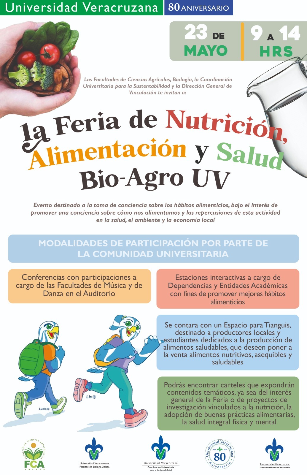 El jueves 23 de mayo pasado, la Facultad de Ciencias Agrícolas celebró la “1ª Feria de Nutrición, Alimentación y Salud Bio-Agro/UV 2024” (NUTRASA-Bio-Agro-UV-2024) con la finalidad de hacer llegar a la comunidad que integra las Facultades de Biología y Ciencias Agrícolas, y al público en general, una mirada multidimensional de la relación entre la buena alimentación y el bien estar.