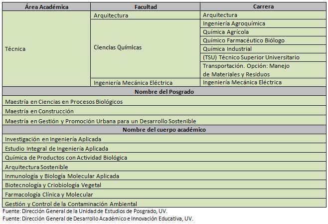 La Universidad Veracruzana se encuentra presente en esta región Córdoba-Orizaba, en la siguientes tablas se resumen las entidades académicas, posgrados y cuerpos académicos con las que cuenta la universidad en esta región.