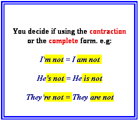 Pass the mouse pointer on the blue squares to see the negative To be form with contractions.