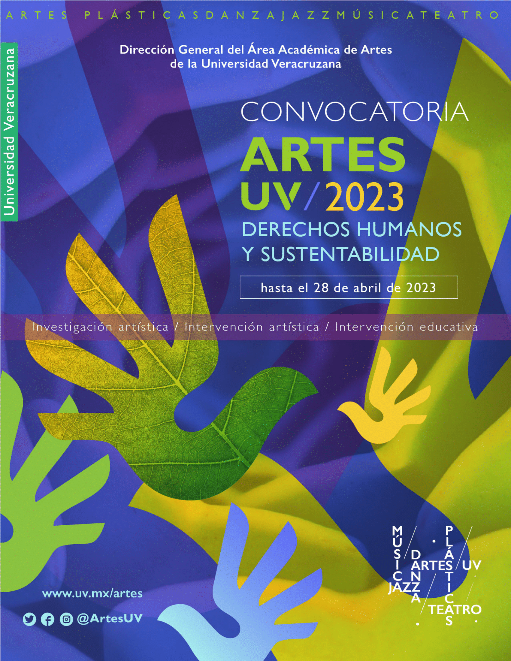 | Convocatoria Artes UV 2023 | Del 20 de Febrero al 28 de Abril | https://www.uv.mx/artes/artes-uv-2023-derechos-humanos-y-sustentabilidad/ | ![]() |
