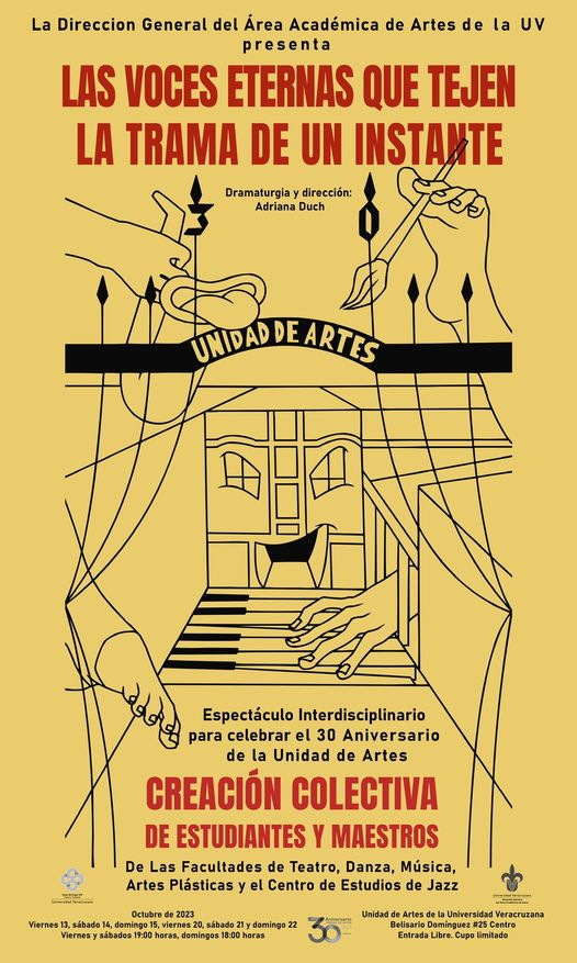 | Espectáculo interdisciplinario «Las Voces eternas que tejen la trama de un instante» | Octubre | https://www.uv.mx/artes/espectaculo-interdisciplinario-las-voces-eternas-que-tejen-la-trama-de-un-instante/ | ![]() |