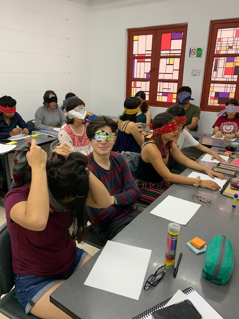 Febrero-Julio 2020, periodo marcado por la pandemia Covid-19, desarrollaron un proyecto titulado CONCIENCIaRTE, -concienciando la cultura de la inclusión- que propone intervenciones gráficas en toda la zona remodelada de Rectoría UV y material artístico-didáctico para personas con discapacidad visual (PCDV), junto con Haptizar (proyecto de emprendimiento con responsabilidad social, en colaboración con la asociación civil de estudiantes o trabajadores ciegos y débiles visuales del estado de Veracruz, perteneciente a dos de sus colaboradoras, hoy egresadas). Fundamentado en un taller titulado Explorando y descubriendo oportunidades –CONOCER PARA CREAR– ofrecido por la LDCV Jessica Soler Balam (egresada), La LII. Josefina López Hernández (única egresada con discapacidad visual de la Facultad de Idiomas UV) y Ana Paola Morgado (estudiante de preparatoria). Además de incluir un curso en Braille. Y una importante colaboración con el Cuerpo Académico Autonomía del Aprendizaje UV-CA- 423 de la Facultad de Idiomas de la Universidad Veracruzana.
