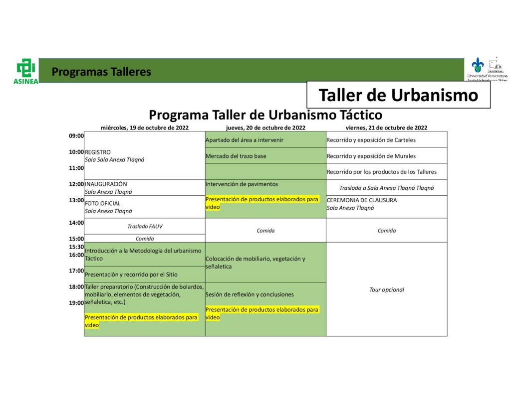 El programa planteado para este taller es el siguiente: