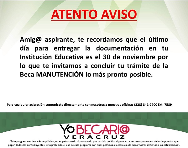 Si quieres conocer todos los requisitos e información visita el sitio: www.uv.mx/escolar/manutencion2015