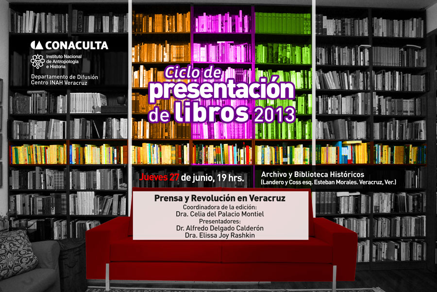 19:00 Presentación de libro. Prensa, revolución y vida cotidiana en Veracruz 1910-1915, Coordinado por Celia del Palacio. Presentan: Ricardo Pérez Montfort, Celia del Palacio y Elissa Rashkin.