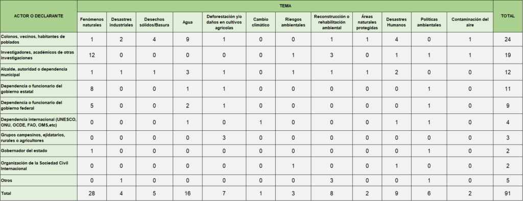 En esta edición se analiza quiénes fueron los actores o declarantes que tuvieron la voz en las noticias y el tema que abordaron, así como los señalamientos de grupos sociales y la participación del área de Protección Civil.