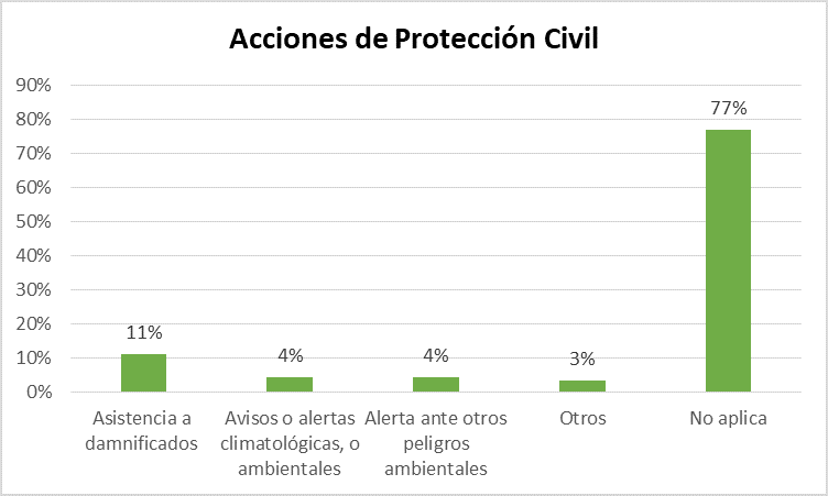 Mientras que de las “Acciones de Protección Civil” se destacó la Asistencia a damnificados.
