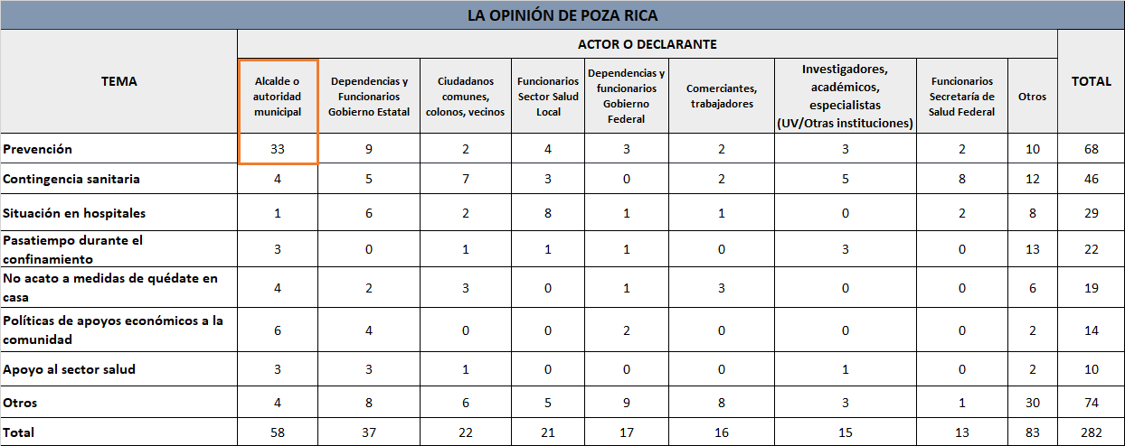 En La Opinión de Poza Rica, el “Alcalde o autoridad municipal” abordó el tema “Prevención” en 33 de 282 noticias.