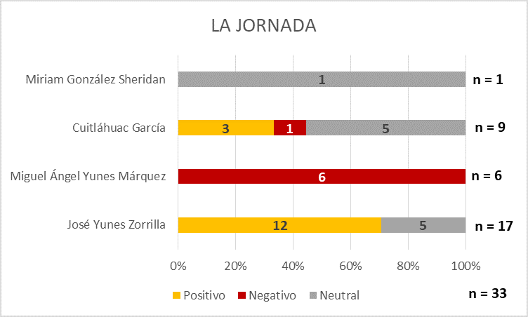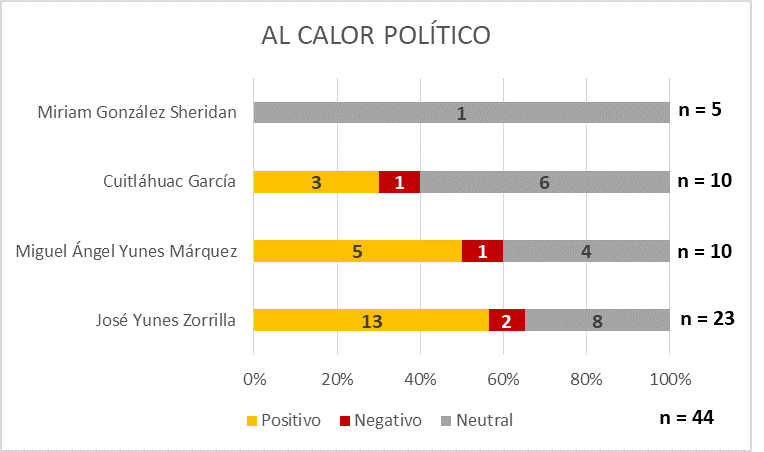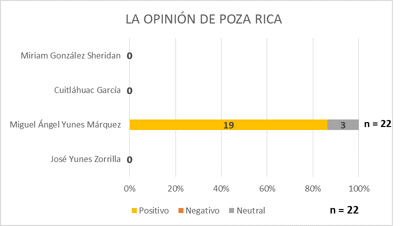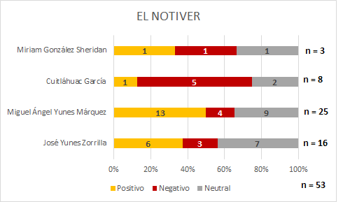 Las notas que se calificaron por Positivo, Negativo y Neutral hacia el candidato José Yunes Zorrila y Miguel Ángel Yunes Márquez tuvieron el mayor número de notas positivas.