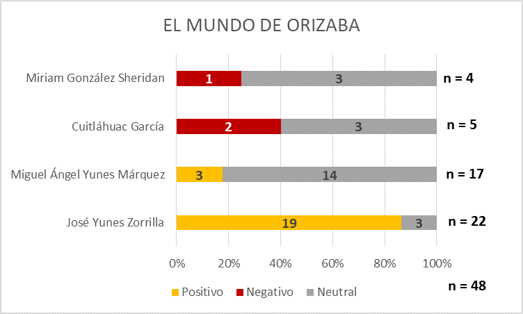 José Yunes Zorrilla obtuvo más notas en “El Mundo de Orizaba”, “Al Calor Político” y “La Jornada”.