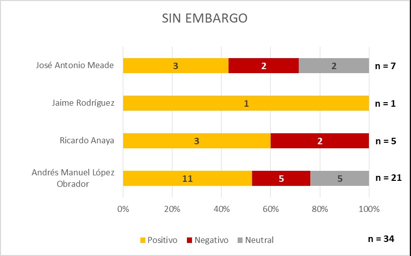 Las notas se calificaron por Positivo, Negativo y Neutral. La mayoría de las notas tuvieron una calificación positiva en Sin Embargo.