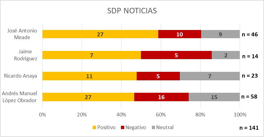 En SDP Noticias, la mayoría de las notas fueron positivas para todos los candidatos.