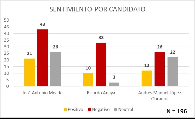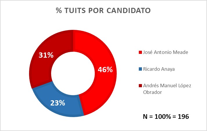 De los 196 tuits analizados, el 46% hablaron sobre José Antonio Meade.