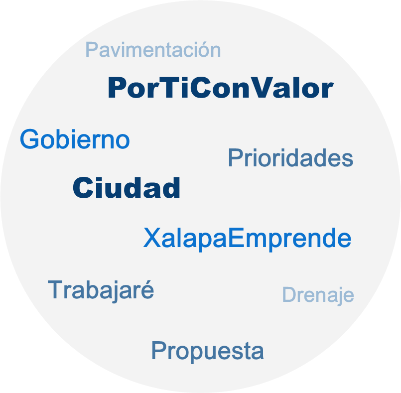 La nube con las palabras más representativas de los tuits con el hashtag #PorXalapaYoRespondo