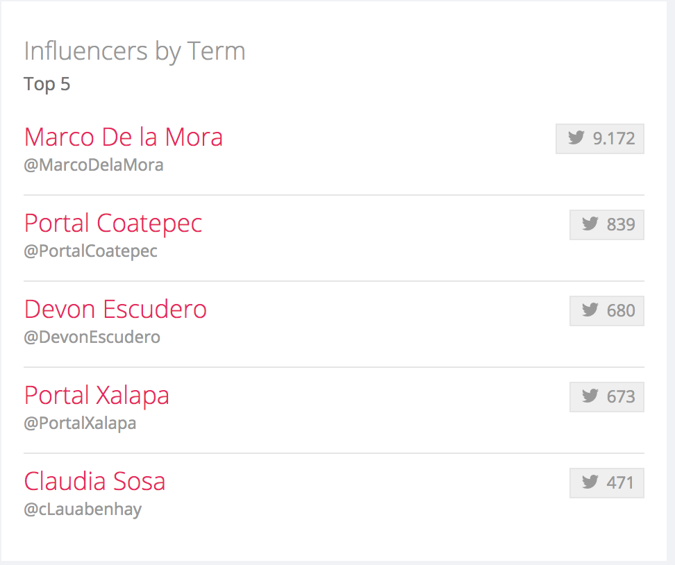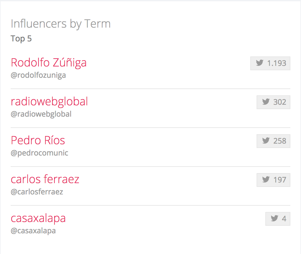 Los siguientes usuarios son quienes más escriben usando el hashtag #PorXalapaYoRespondo