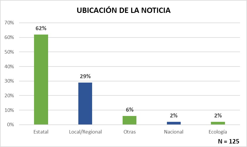 De 125 noticias, el 38% fue emitido por una Dependencia o Funcionario Estatal, seguido del Alcalde o autoridad municipal con el 12%.