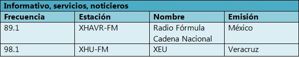 Con el objeto de analizar las características de las estaciones de frecuencia modulada que se escuchan en el espectro radiofónico de la ciudad de Xalapa, el Observatorio Veracruzano de Medios llevó a cabo un análisis de contenido de la programación de todas las estaciones que están al aire en el espectro radiofónico de frecuencia modulada en la ciudad de Xalapa.