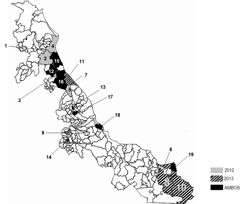 En 2013 se mencionaron más a los municipios de Coatzacoalcos, Tecolutla, Minatitlán, Coscomatepec, Las Choapas y Gutiérrez Zamora.