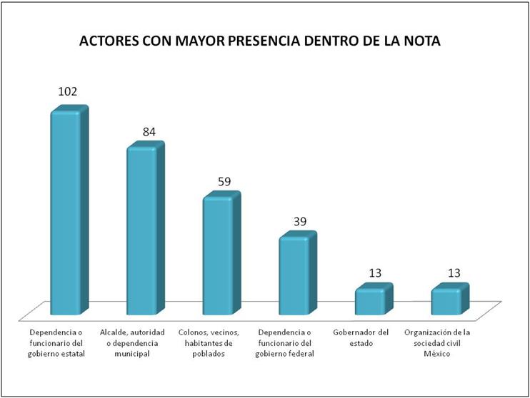 Y son las autoridades o dependencias estatales, así como las municipales, las que de manera más frecuente, declaran o actúan como protagonistas en las noticias que publica la prensa veracruzana en temas relacionados con el medio ambiente.