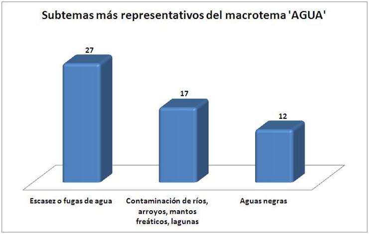 En la tabla que se presenta a continuación se enlistan los 16 temas abordados por los candidatos a ambas posiciones políticas (alcaldías y diputaciones) de los tres principales partidos políticos. Cabe destacar que en una misma noticia, se podían detectar más de 2 temas, incluso siete u ocho, de los que aquí se enlistan, por lo que el número de temas abordados no se corresponde con el número de noticias analizadas.