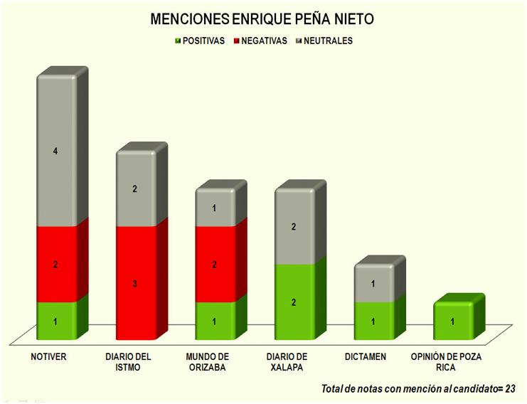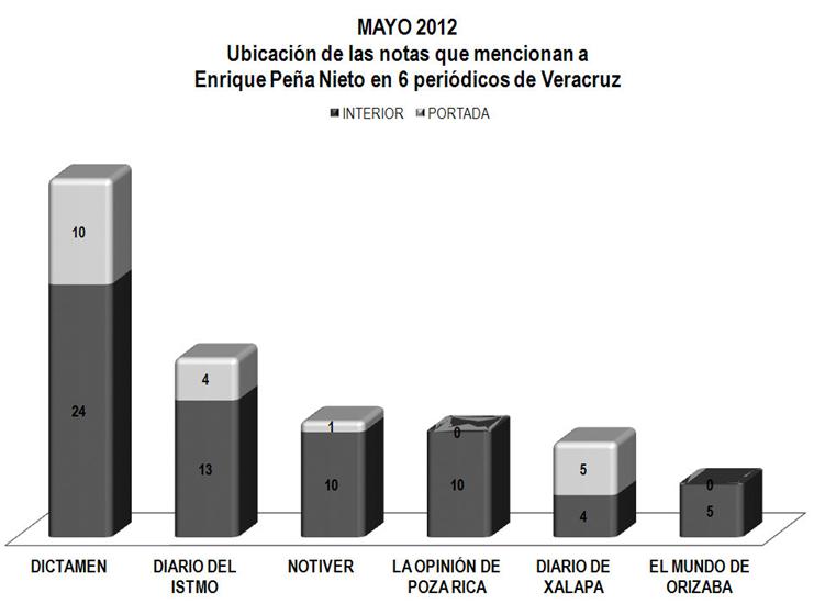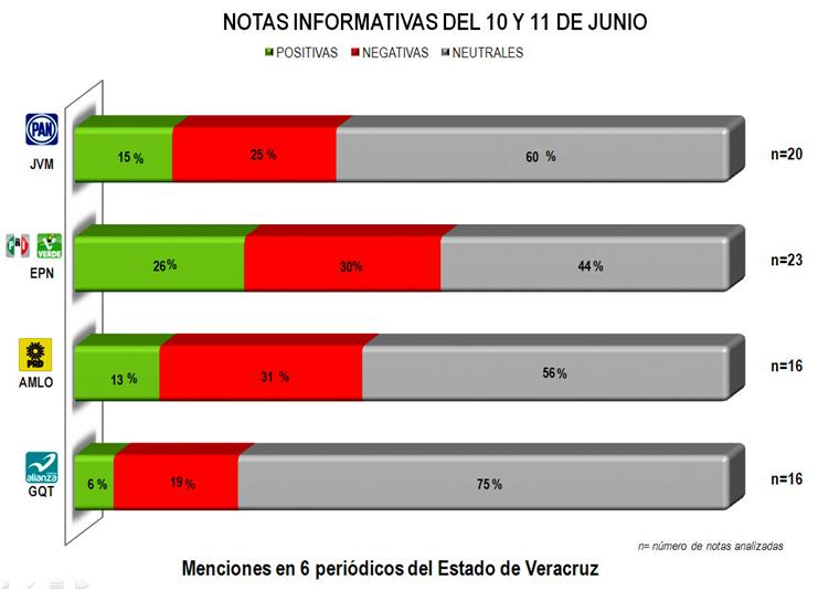 La prensa de Veracruz publicó en total 75 notas relacionadas con las campañas de los cuatros candidatos presidenciales, durante esos días, que estuvieron marcados en la agenda noticiosa por temas relacionados con el propio debate televisivo (que se transmitió a través de los dos canales de mayor audiencia en el país), la irrupción de manifestaciones «anti Peña» y del movimiento estudiantil «Yo Soy 132», entre otros.