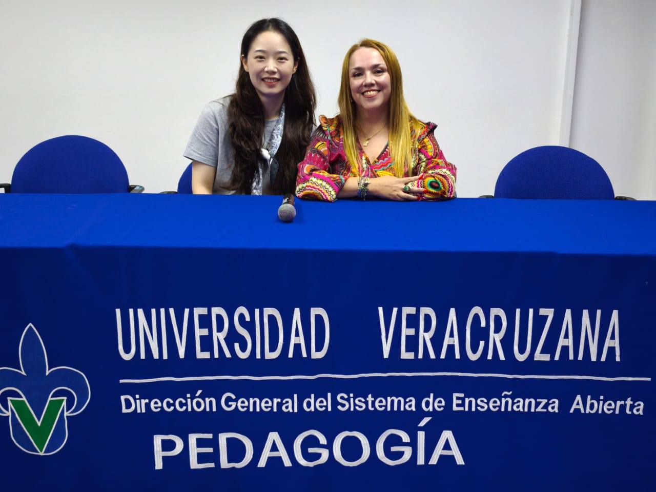 La Dra. Tong Wu colaborará en diversas tareas de investigación y docencia, con la Dra. Anid Cathy Hernández Baruch, docente del Programa Educativo de Pedagogía SEA. Ambas aparecen sonrientes, durante un momento posterior a la recepción