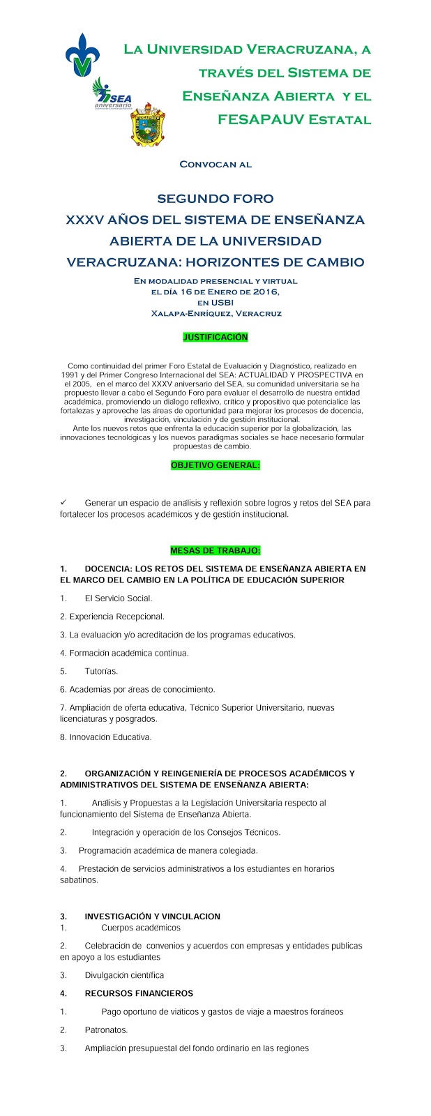 Convocatoria del Segundo Foro del XXXV Aniversario del Sistema de Enseñanza Abierta de la Universidad Veracruzana: Horizontes de Cambio