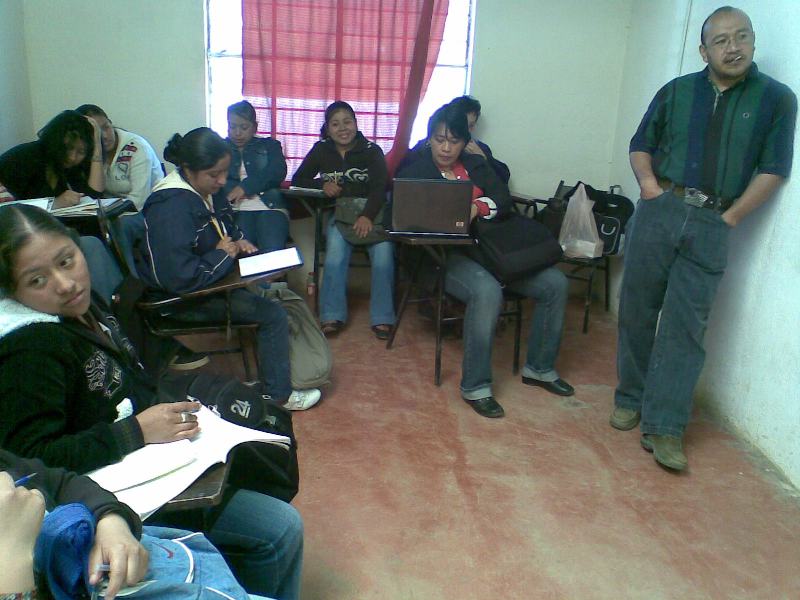 Poco a poco se fue animando la cosa. Por supuesto los profes presentes también participamos. Tras el repaso en voz alta de lo que dijeron de sí mismos los alumnos, pasamos a la báscula Norma, Edelmira García  (Responsable de la Orientación en Derechos), Verónica Carreón (EE Historia, Territorio e Identidad), Víctor Abasolo (Responsable de la Orientación en Sustentabilidad) y yo mero.
