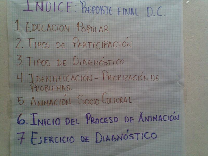 Nuestra sistematización surgió del acuerdo, sí, pero atendiendo a las múltiples razones del ejercicio de diagnóstico. Es decir, no pensamos en una metodología probada para esta ocasión, sino en una oportunidad para razonar y reflexionar sobre todo lo que se realizó durante el semestre, darle un significado al conocimiento estudiado y generado en función de su utilidad y trascendencia, en ambos casos tanto para la formación profesional como para la necesaria acción de compartir con la comunidad; algo así como el “minutario” de la ida y la vuelta de todo este periodo.