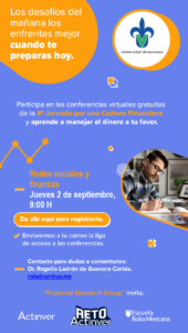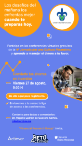 Como parte de los programas de fomento a la Cultura Financiera y Bursátil en los que estos órganos colegiados colaboran a nivel institucional, se les invita a participar en la 4ª Jornada por una Cultura Financiera que organiza el Grupo Financiero Actinver, que se llevará a cabo del 20 al 24 de septiembre de 2021.