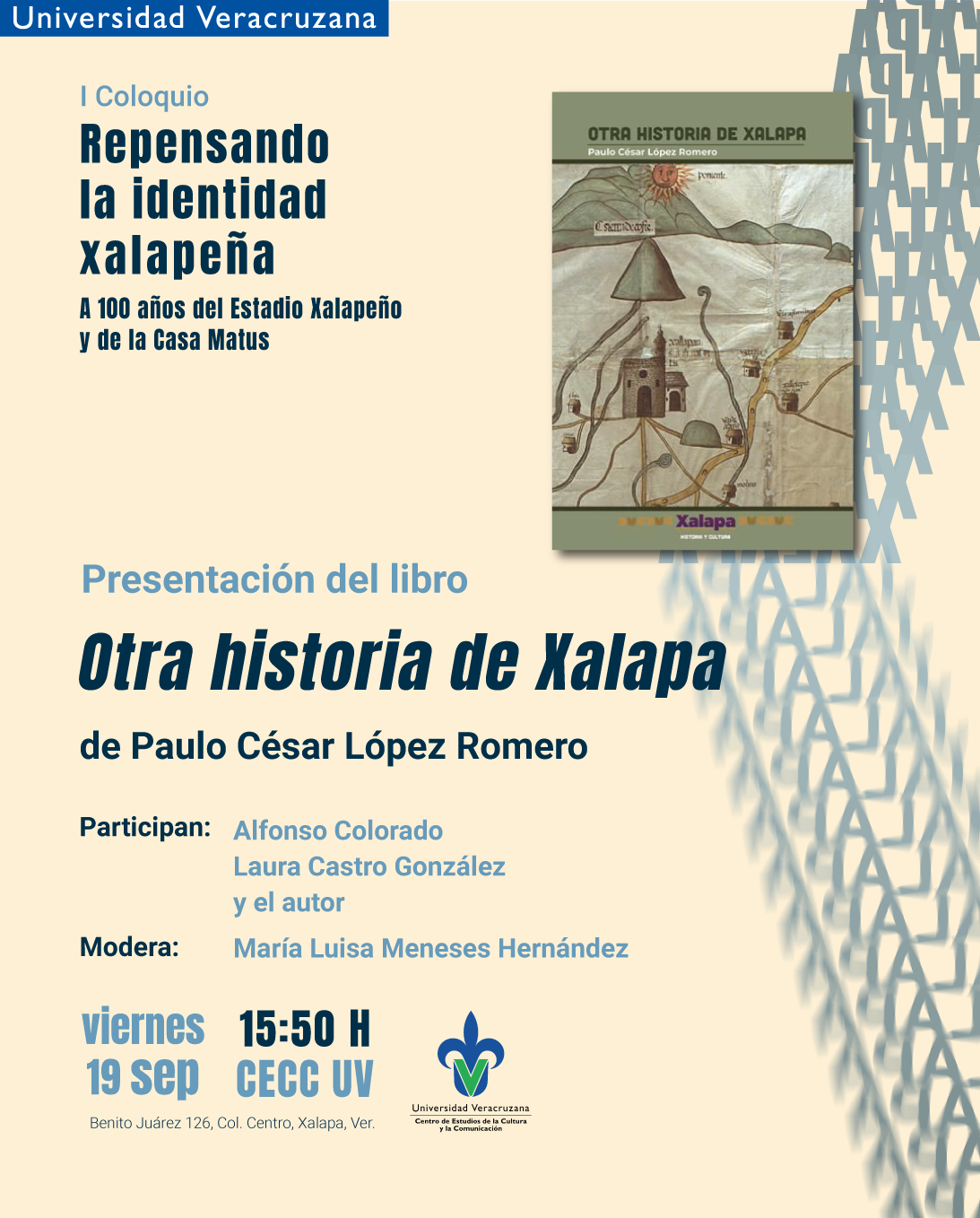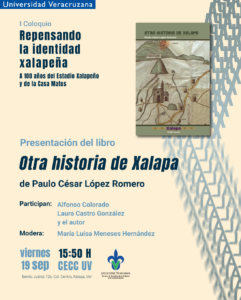 - Presentación del libro Otra historia de Xalapa, de Paulo César López Romero. Alfonso Colorado, Laura Castro González y el autor Modera: María Luisa Meneses Hernández