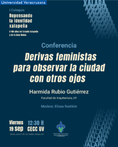 - Conferencia Derivas feministas para observar la ciudad con otros ojos Harmida Rubio Gutiérrez.
