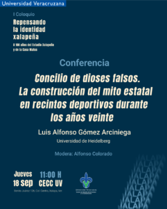 - Conferencia Concilio de dioses falsos. La construcción del mito estatal en recintos deportivos durante los años veinte Luis Alfonso Gómez Arciniega.