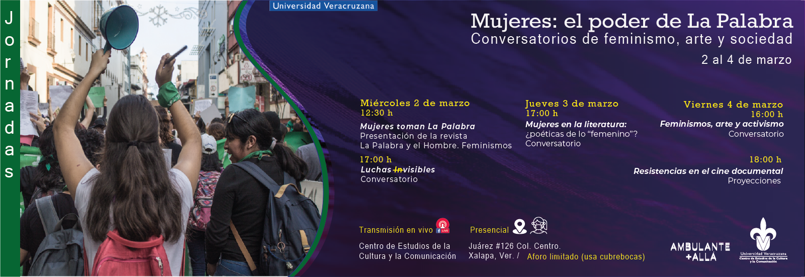 En el marco de la conmemoración del Día Internacional de la Mujer y a razón del último número de la revista La Palabra y el Hombre sobre feminismos, se realizará la jornada de actividades Mujeres: el poder de La Palabra, conversatorio de feminismo, arte y sociedad, organizado por alumnas de la sexta generación de la Maestría en Estudios de la Cultura y la Comunicación de la Universidad Veracruzana.