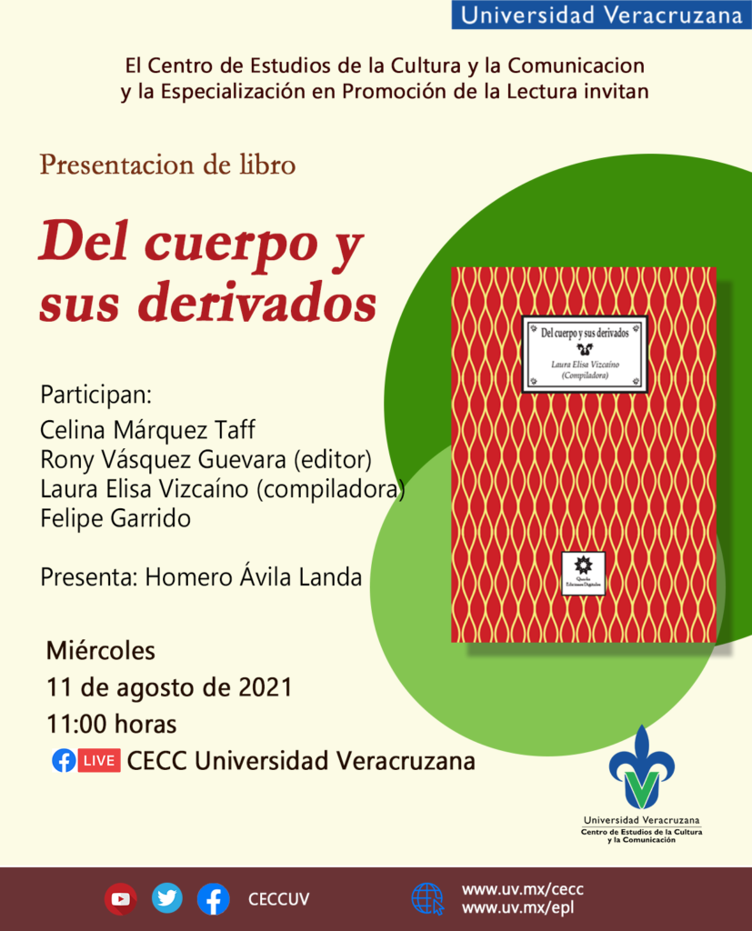 Atenta invitación a la presentación del libro «Del cuerpo y sus derivados» que compiló la Dra. Laura Elisa Vizcaíno del Instituto de Investigaciones Bibliográficas de la UNAM.
