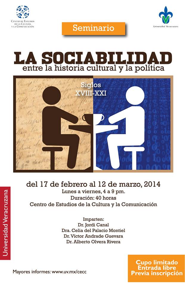 El Centro de Estudios de la Cultura y la Comunicación invita el Seminario “La sociabilidad, entre la historia cultural y la política. Siglos XVIII al XXI”, a cursarse del 17 de febrero al 12 de marzo en las instalaciones del CECC con un total de 40 horas. El cupo es limitado.