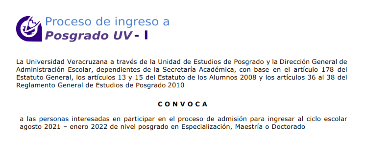 Convocatoria de Ingreso al Posgrado 2021_1 Abierto el Proceso de Ingreso al Posgrado 2021 https://www.uv.mx/escolar/posgrado2021/