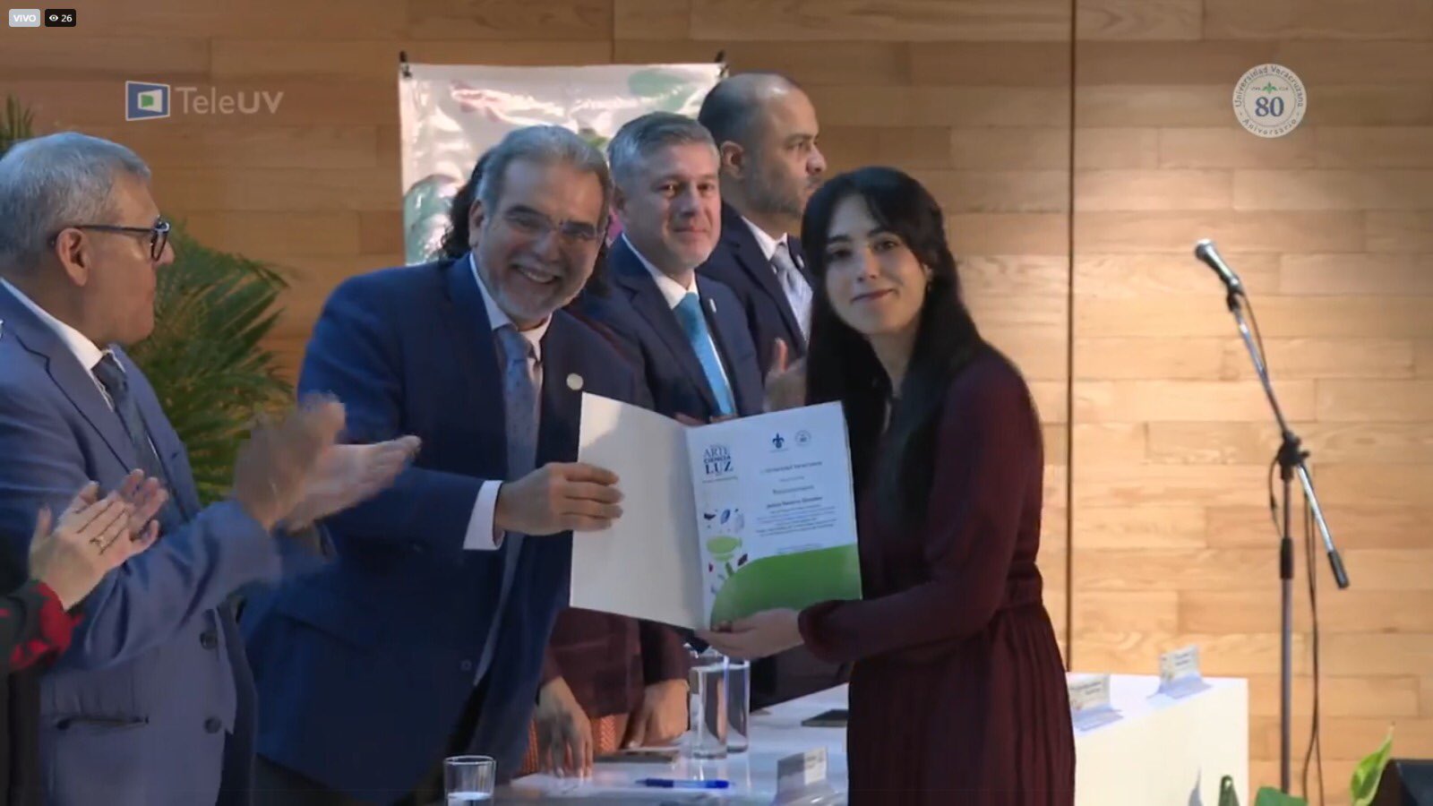 Por su lado, Kelly Raquel Moreno Ortega, egresada de la Especialización en Promoción de la Lectura, fue acreedora de del Premio “Arte, Ciencia, Luz” al mejor trabajo recepcional 2024 al nivel Especialidad, por su trabajo: «Miradas desde las aristas. Fomento a la lectura en mujeres que habitan la periferia de Xalapa, Veracruz«, dirigida por la Dra. Olivia Jarvio Fernández.