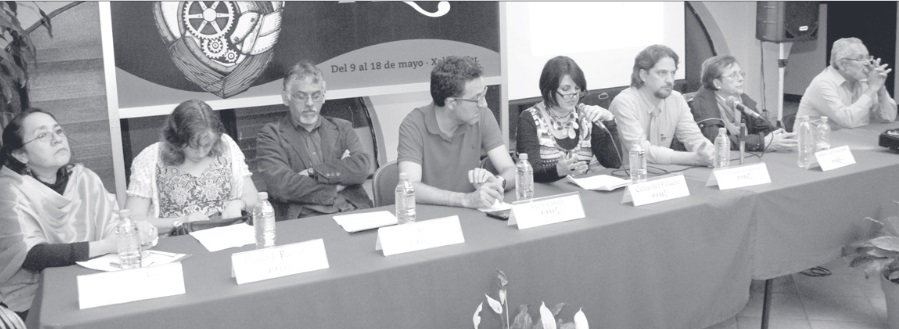 En la mesa participaron Celia del Palacio, coordinadora del CECC; Edgar García Valencia, director de la Editorial UV; así como Norma Esther García Meza, Antoni Castells, Rafael Figueroa, Homero Ávila Landa, Leticia Cufré Marchetto y Elissa Rashkin.