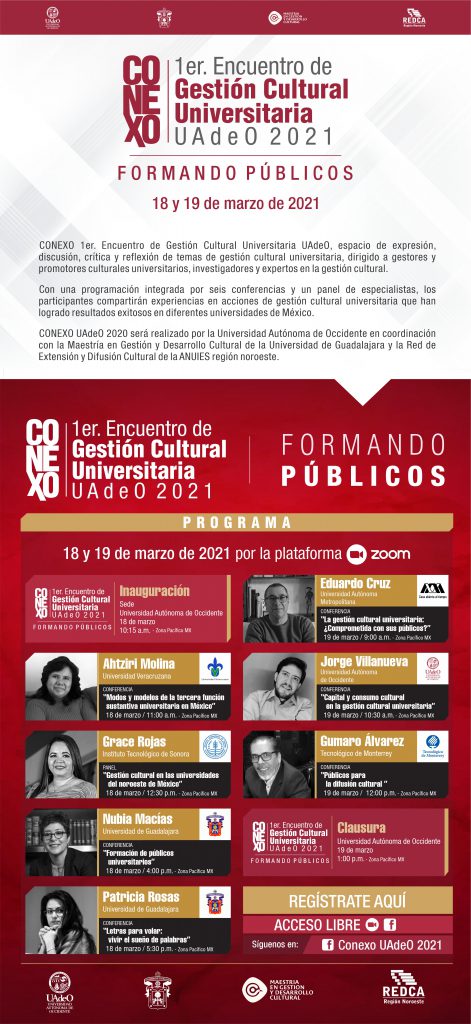 1er. Encuentro de Gestión Cultural Universitaria UA de O 2021 https://forms.office.com/Pages/ResponsePage.aspx?id=4DXcX6A_E0mNtlO4U1ywmKmwHsJnATZGuWHP0IGZ1aFUQ0JGVzBWWFpOUzZYNE0yRE8wRUFVS0pGRS4u
