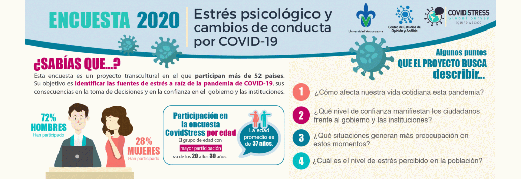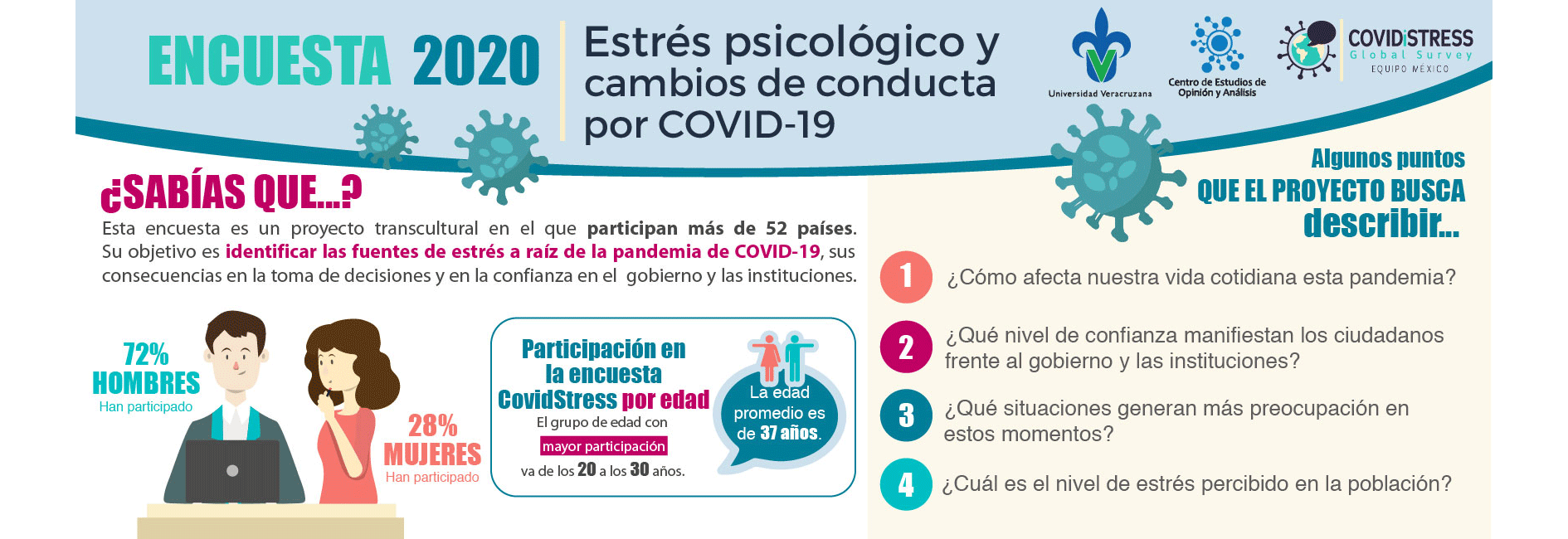 De tal manera que el Centro de Estudios de Opinión y Análisis (CEOA) de la UV nuevamente hace la invitación a la comunidad universitaria y población diversa a participar en la encuesta COVIDiSTRESS Global Survey.