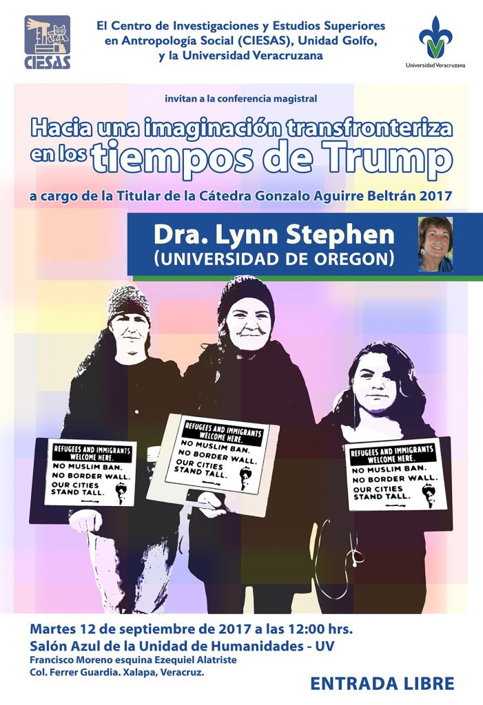 Posteriormente tuvo lugar la Conferencia Magistral: “Hacia una imaginación transfronteriza en los tiempos de Trump”, impartida por la Titular 2017 de la Cátedra Dra. Lynn Stephen de la Universidad de Oregón.