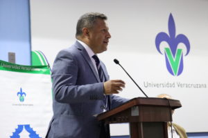 Por su parte, Jorge Pérez Moreno, Rector de la Universidad Central de Veracruz, expuso sobre la globalización económica y la apertura comercial de México, resaltando los cambios en la política económica desde la sustitución de importaciones hasta la firma de tratados comerciales clave como el T-MEC y TIPAT.