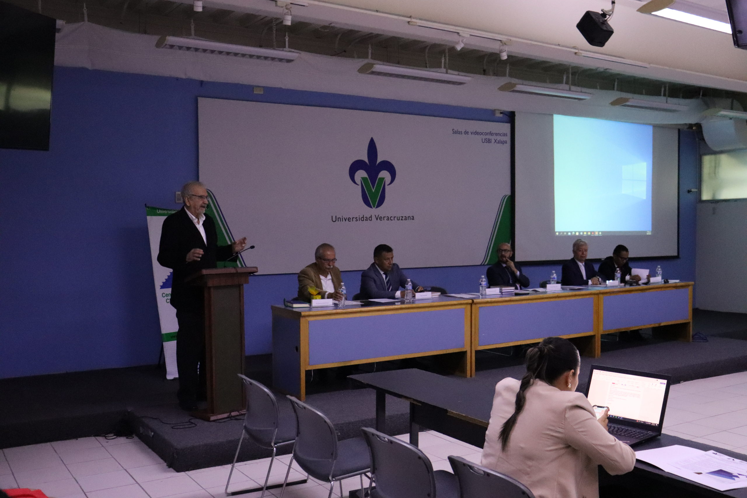 Por su parte, Jorge Pérez Moreno, Rector de la Universidad Central de Veracruz, expuso sobre la globalización económica y la apertura comercial de México, resaltando los cambios en la política económica desde la sustitución de importaciones hasta la firma de tratados comerciales clave como el T-MEC y TIPAT.