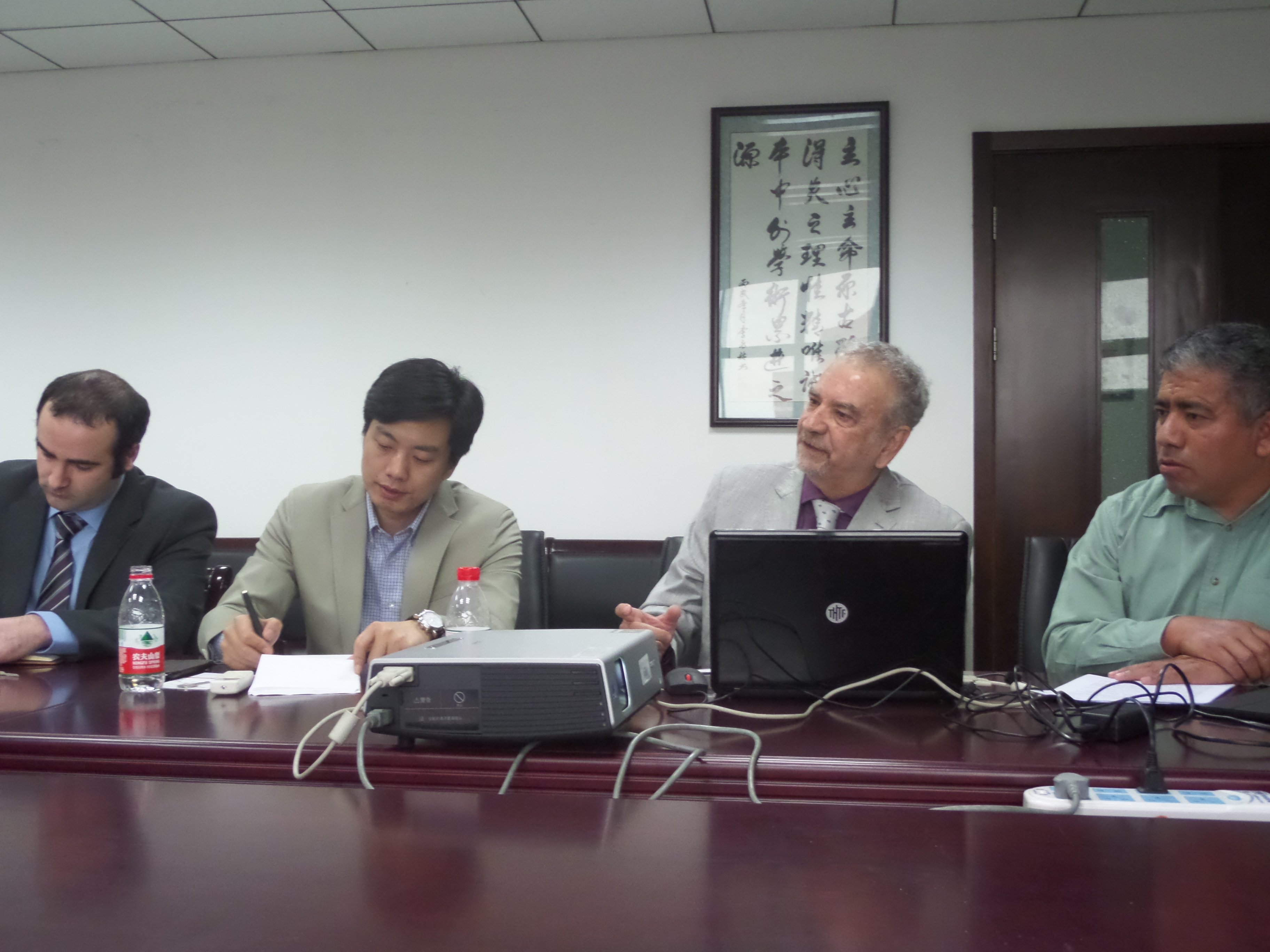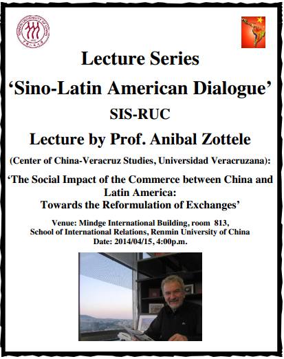 El Dr. Aníbal Zottele Allende durante su plática sobre el impacto social del comercio entre China y América Latina, en la Facultad de Relaciones Internacionales de la Universidad del Pueblo de China. Abril 14, 2014, Pekín, China.