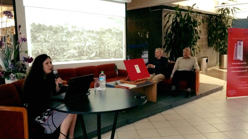 Dra. María Teresa González Linaje, presentando el libro “Suite des seize estampes representant les conquêtes de l’Empereur de la Chine: un modelo de hibridación cultural para el siglo XVIII”.