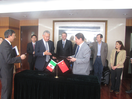 Raúl Arias y Yang Huilin firman el convenio marco de colaboración entre la UV y la Renmin University of China septiembre 2011