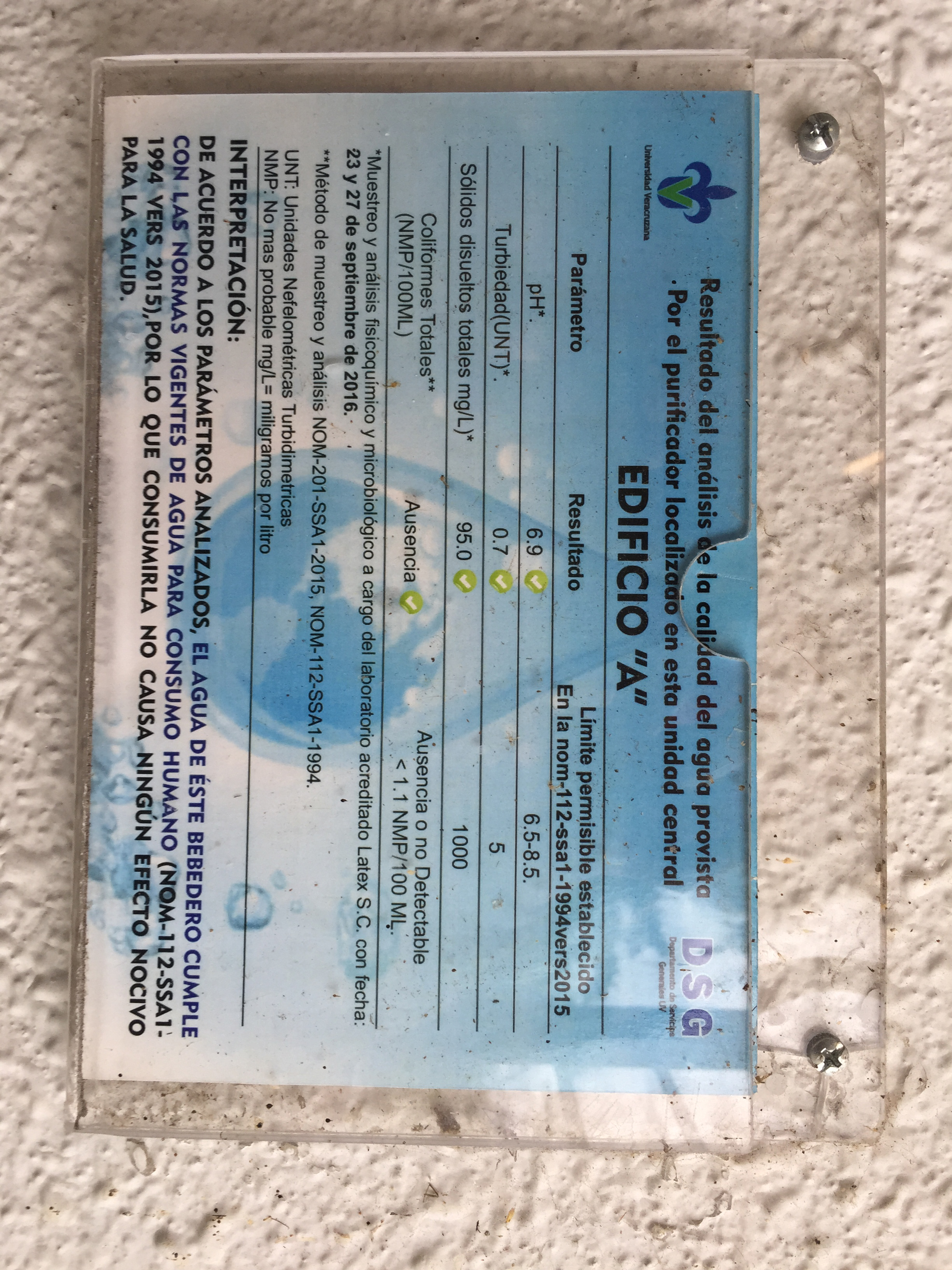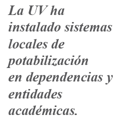 Los sistemas que han sido instalados en la UV generalmente constan de tres pasos: filtración en dos etapas (dos tipos de filtros) y desinfección. El primer filtro que se utiliza es para la retención de partículas; el segundo para retener sabores, colores, olores y compuestos orgánicos; el tercer y más importe paso es la lámpara de desinfección, la cual utiliza luz ultravioleta para matar microorganismos que pudieran enfermarnos. Una vez que los sistemas de purificación son instalados, se requiere darles el mantenimiento adecuado para asegurar el buen funcionamiento del equipo y que el agua cumpla los parámetros establecidos en la NOM-127-SSA1-1994.